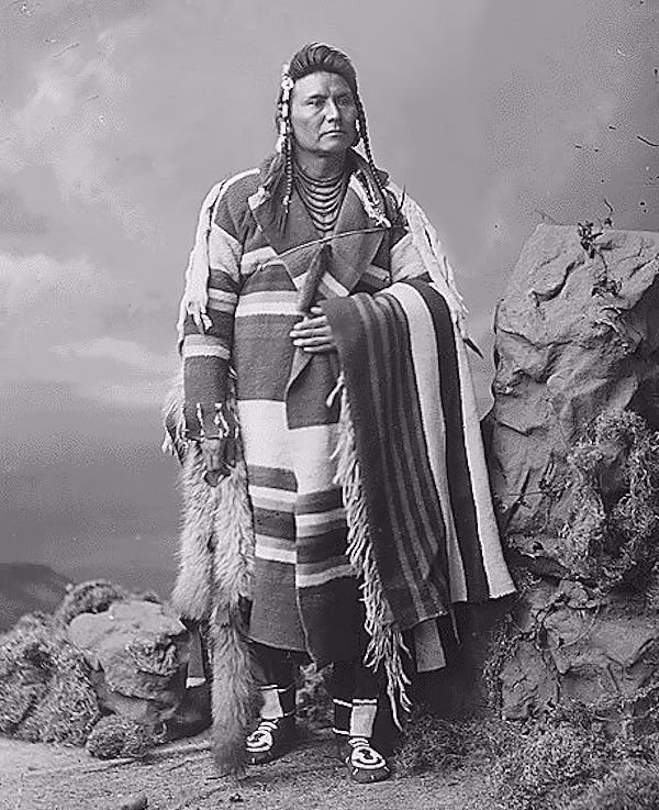 These popular style coats were standard issue during the French and Indian War and the American Revolution and many times were made by the soldiers from issue blankets. By the mid-19th century, the popularity of the Capote had spread westward with the fur trade and it was commonly seen in use by the Indians of the Northern Plains, Rocky Mountains and Columbian Plateau. There were also many commercially made Capotes available. For instance, in 1824, a St. Louis newspaper carried an ad from an oufitter listing “Red Blanket Coats for Sale”.