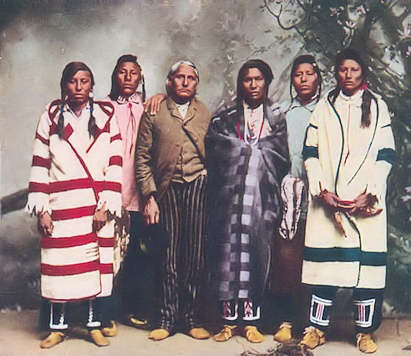 Many surviving photographs show capotes that were locally-made from trade blankets. A high proportion of these photos show coats made from white point blankets with colored stripes. Blankets in any of the available colour and stripe patterns would also have been sewn into capotes. The strong preference for native hunters was white, as it provided camouflage in the snow. In the 19th century ready-made capotes were also available. The Hudson’s Bay Company purchased capotes from several manufacturers in England for sale to its employees and Aboriginal customers.