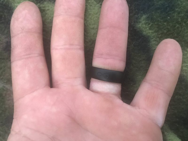 Putting the ring on, the sizing was good. It fit well, and I went about my day as before. At the end of the day, I flipped the ring over on my finger (they’re flexible so they roll over without removing them) only to be impressed that there was no mucky white skin under the ring!